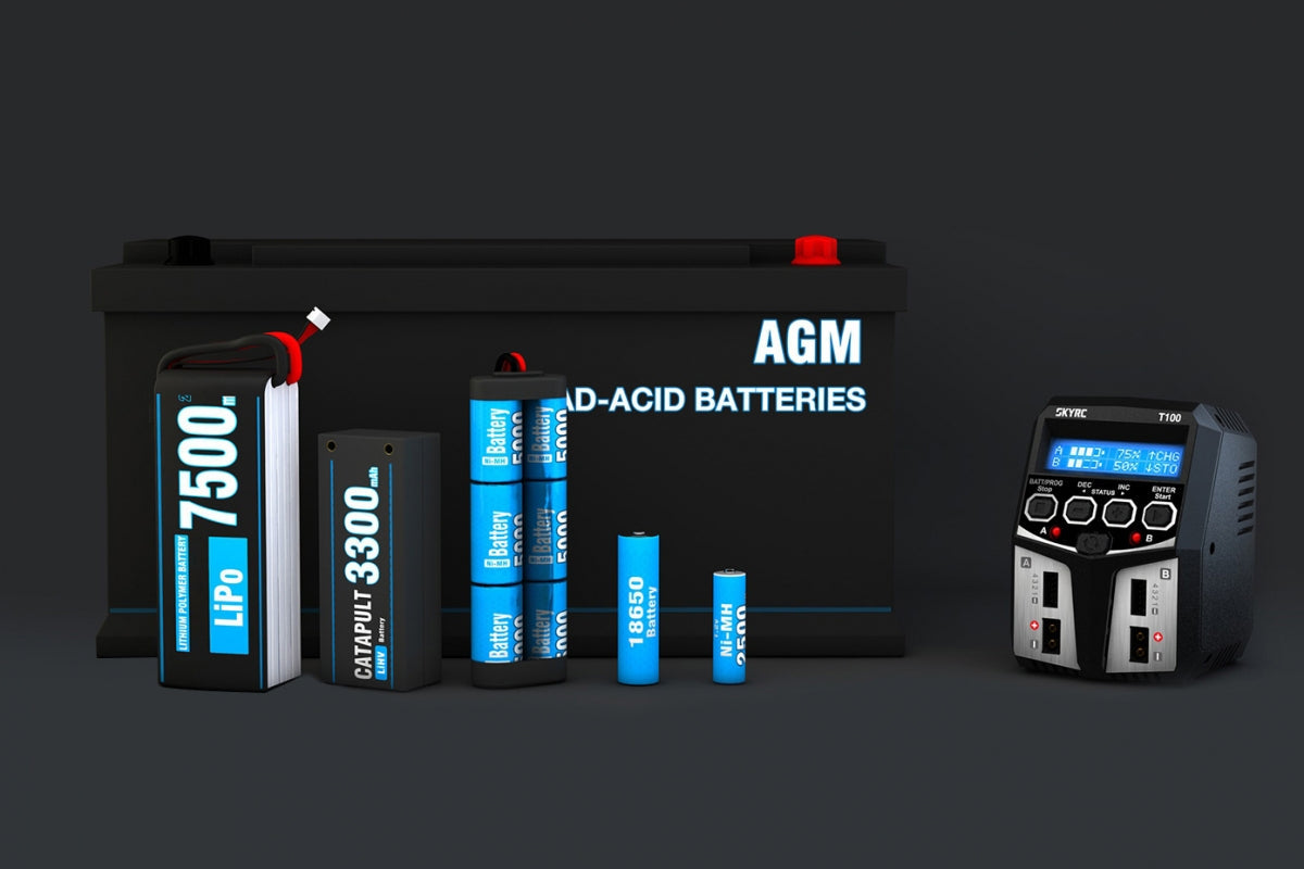 Das SkyRC T100 ist ein universelles AC Multifunktions-Lade- und Entladegerät, das für die gängigsten Akkutypen wie LiPo, LiHV, LiIon, LiFe, NiCd, NiMH und Pb geeignet ist.