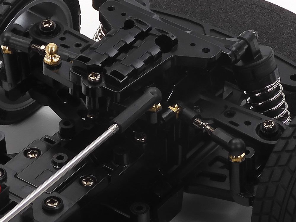 Das 2WD-Chassis des BT-01 bietet die Wahl zwischen zwei Radständen und einem Front- oder Heckantriebssystem. Ohne den Akku, den Motor und die RC-Ausrüstung aus dem Mittelrahmen zu entfernen, kann durch einfaches Umstecken der Zahnräder und des Lenkgestänges zwischen Vorder- und Hinterradantrieb gewechselt werden; bei Fahrzeugen mit Hinterradantrieb kann die Motorposition vorne (FR) oder mittig hinten (MR) gewählt werden. Die 4-Rad-Doppelquerlenkeraufhängung weist eine symmetrische Struktur und Reibungsdämpfer auf. Einheitliche Teile wie Motorträger, Endgetriebe und Aufhängung erleichtern den Zusammenbau und die effektive Wartung.